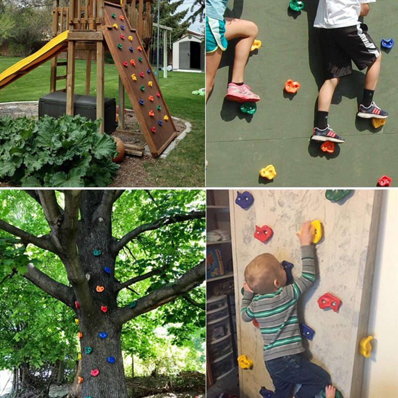 Ideales para instalar en estructuras de juego de madera, como estructuras de escalada, estas rocas ayudan a desarrollar la coordinación motriz y la fuerza física en los niños mediante actividades de trepa y agarre.
