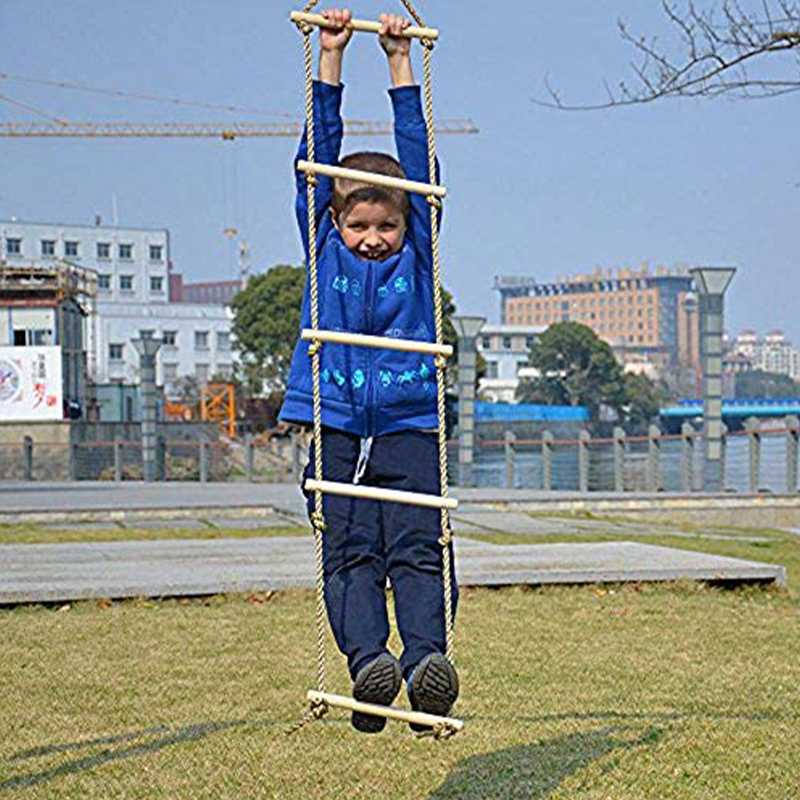 Escalera de cuerda oscilante: adecuada para uso tanto en interiores como en exteriores, ayuda eficazmente a los niños a mejorar el equilibrio corporal, la agilidad y la coordinación durante las actividades de escalada. Las escaleras de cuerda colgantes son para diversos escenarios, como patios traseros de casas, áreas de fitness, ramas al aire libre y casas en los árboles. También se puede combinar perfectamente con otros accesorios, como anillos de suspensión y tirolinas, para crear kits de entrenamiento ninja, instalando pistas de obstáculos en parques para que los niños disfruten de experiencias de ejercicio desafiantes y divertidas.