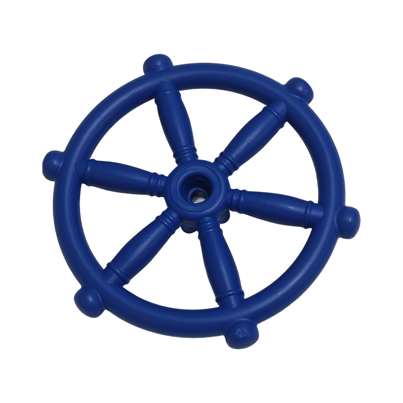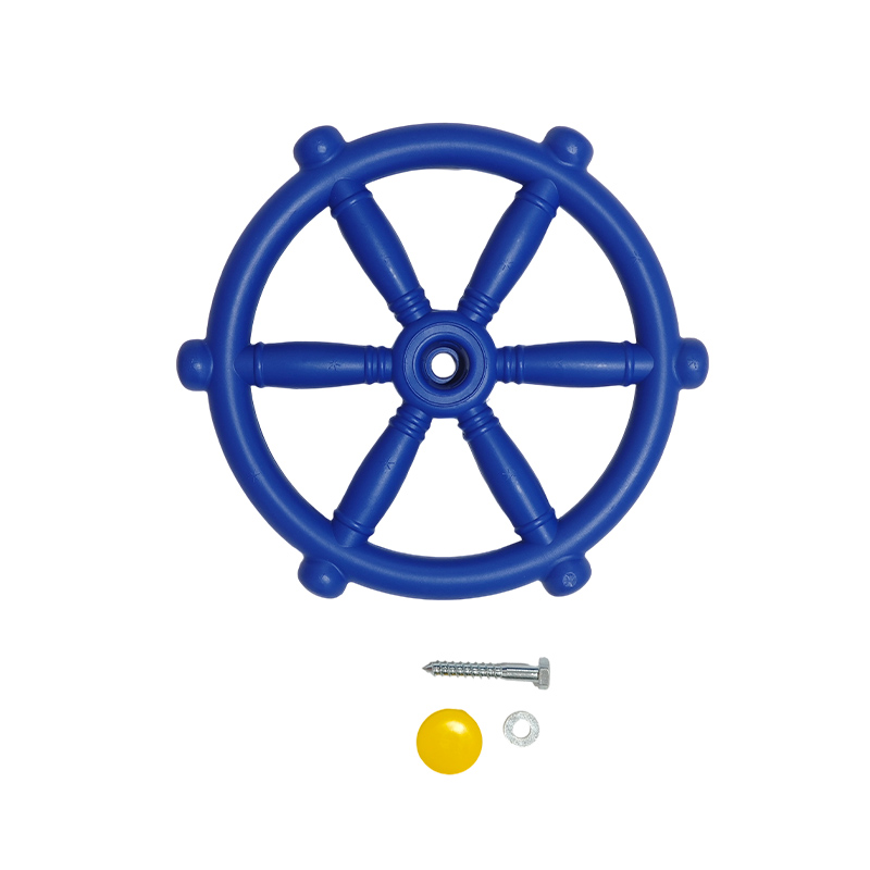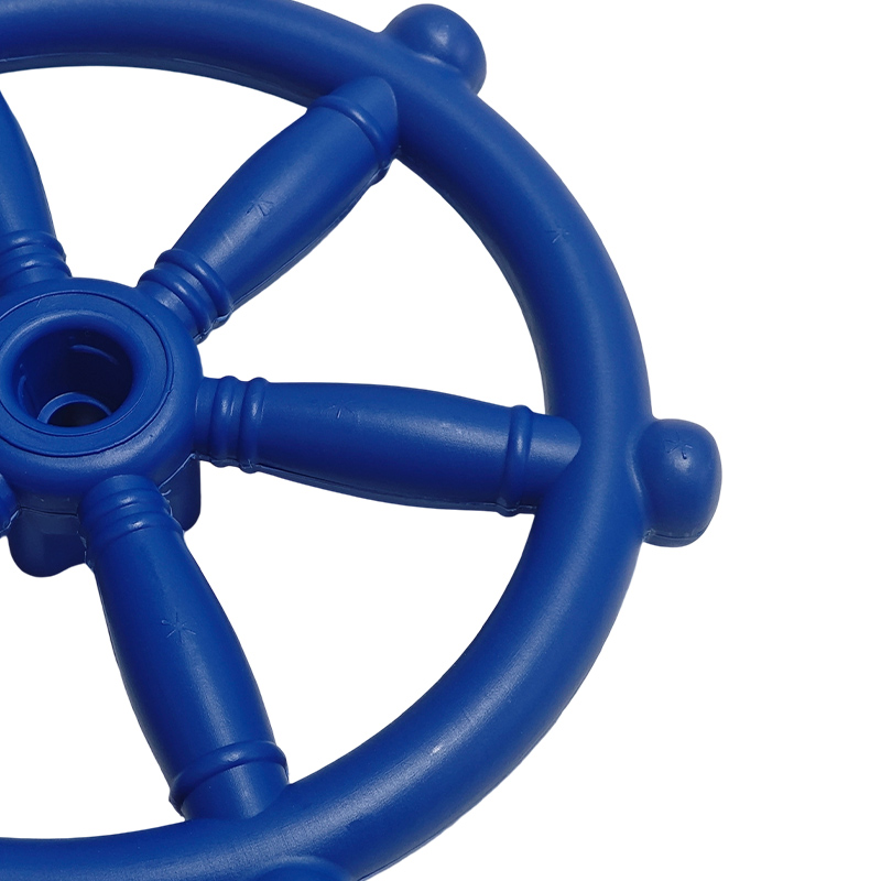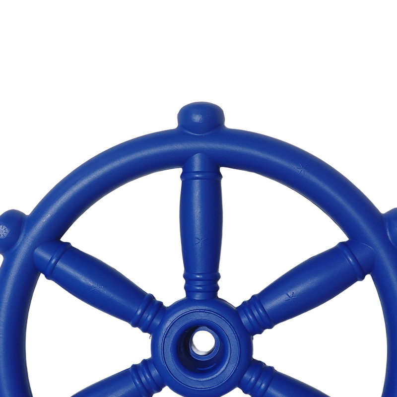 Este volante de madera para casa de juegos cuenta con plástico PE resistente y un diseño resistente de seis radios para mayor durabilidad.