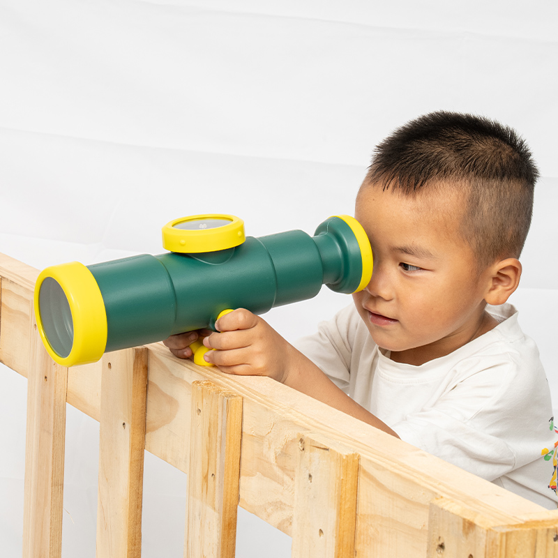 Este telescopio de juguete con brújula de trabajo presenta colores vibrantes de color amarillo verdoso que captan fácilmente la atención de los niños.