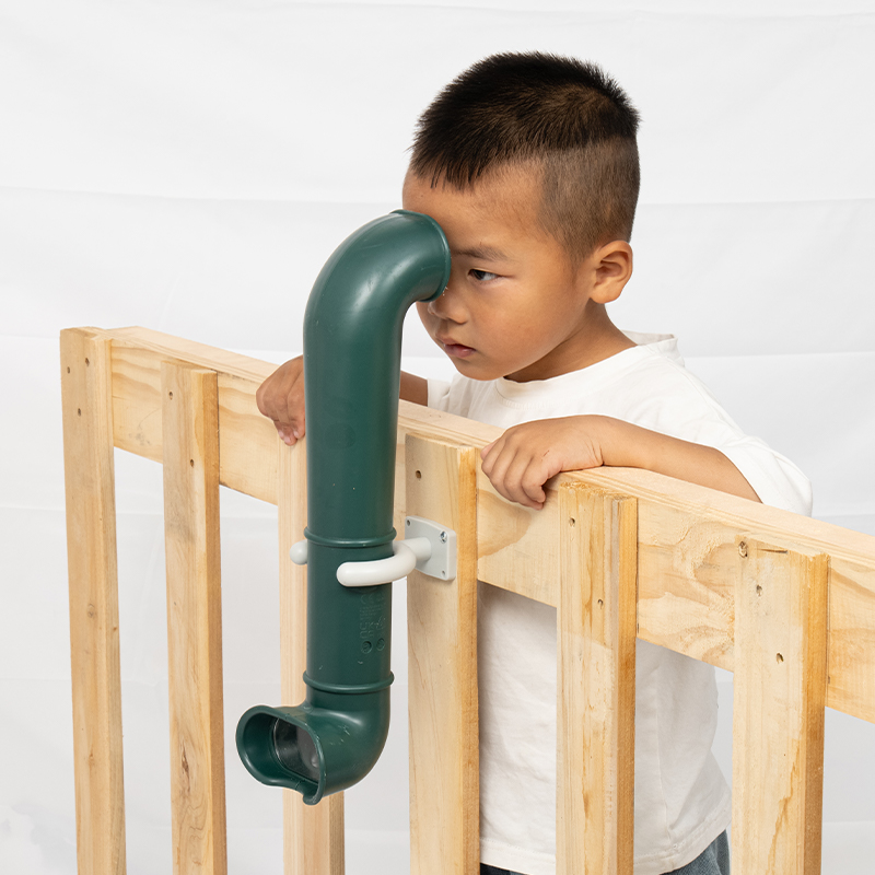 El periscopio de madera para juegos infantiles, especialmente diseñado para equipos de juegos infantiles de madera. Este periscopio está hecho de material HIPS moldeado por inyección para lograr una superficie lisa y sin astillas con bordes redondeados para garantizar la seguridad de los niños.