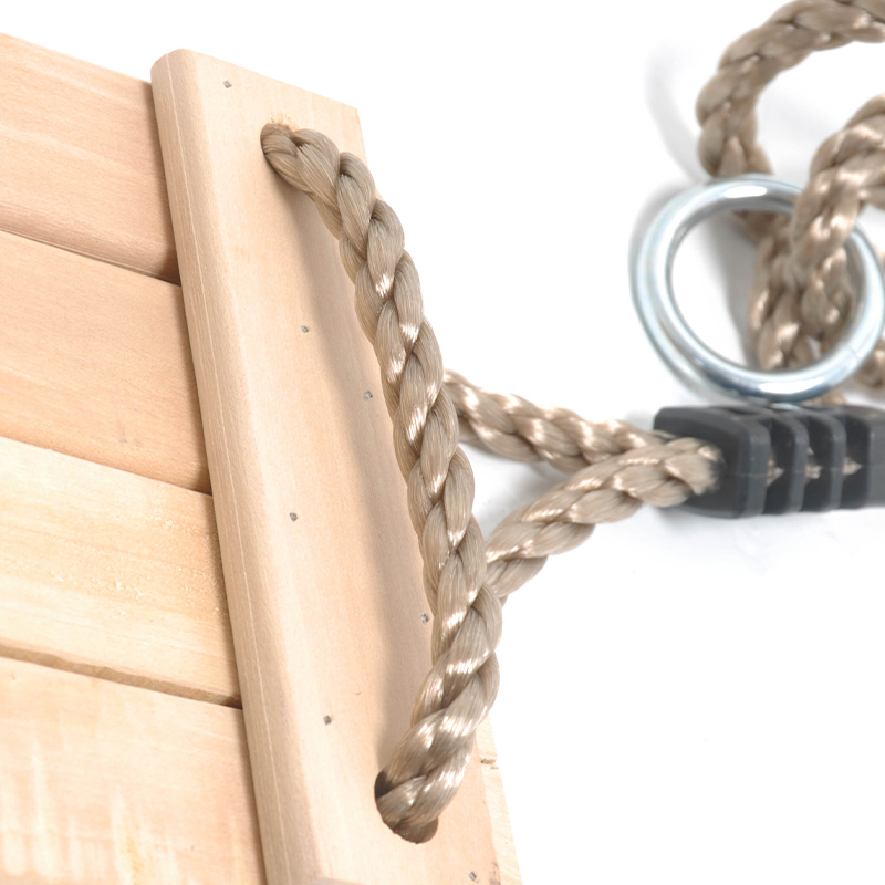 Fabricado con una mezcla de maderas de primera calidad de haya y abedul, este asiento oscilante de 4 tablones presenta un diseño reforzado que le otorga una mayor estabilidad. Tratado con recubrimientos anti grietas y resistente a la descomposición, y combinado con cuerdas de polietileno (PE) de 10 mm, garantiza una capacidad de carga confiable. Las dimensiones del asiento son 40×16×1,2 cm (15,7"×6,3"×0,47") y cuenta con bordes lisos y redondeados para mayor seguridad y comodidad.